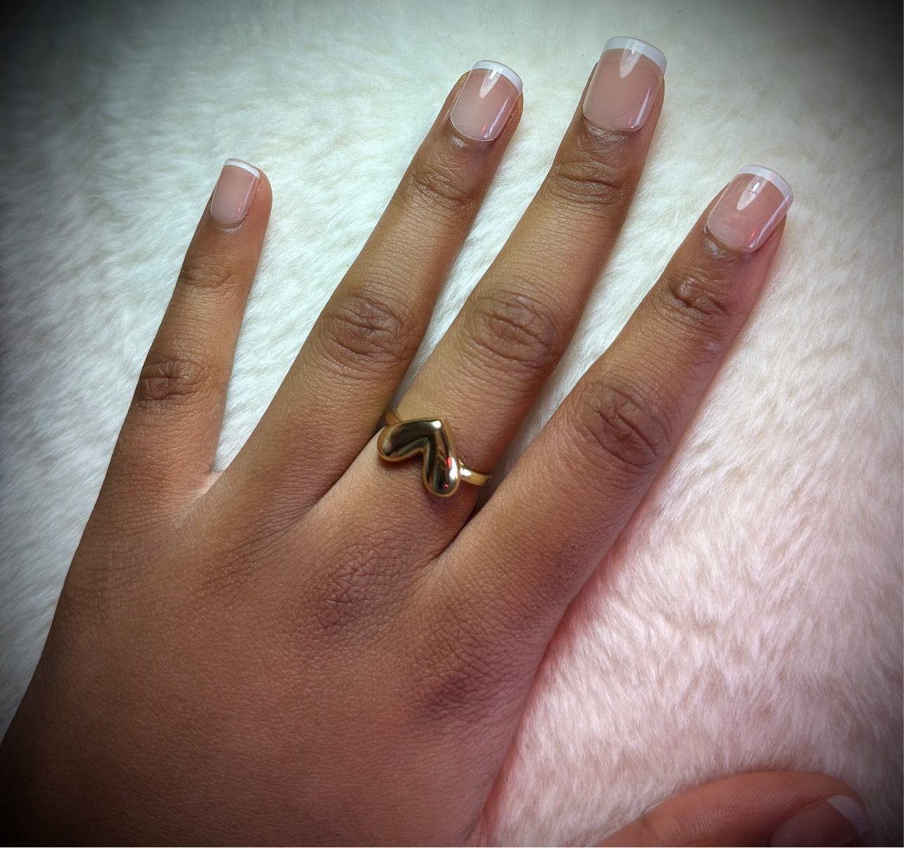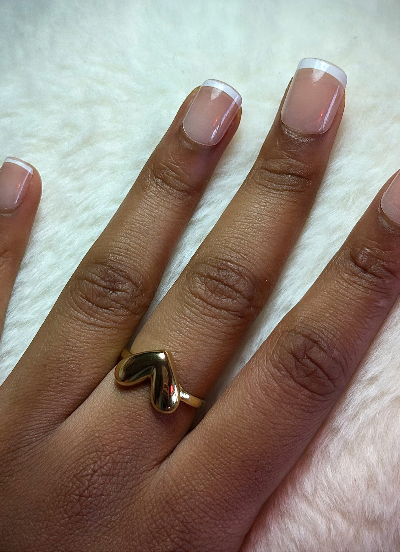 A symbol of affection reimagined with a modern touch, this heart-shaped ring blends sentiment with style. Its graceful curves and bold silhouette make it a standout piece — whether worn as a sweet everyday reminder or layered to express your personal style.