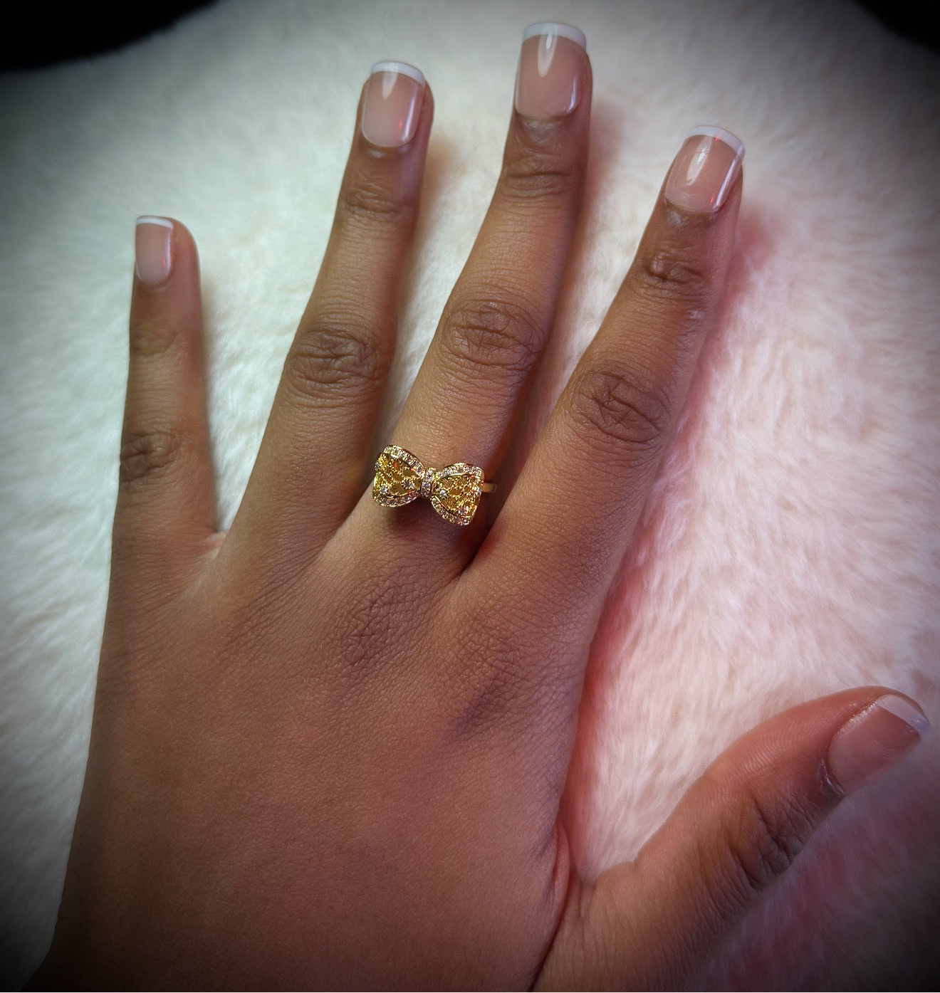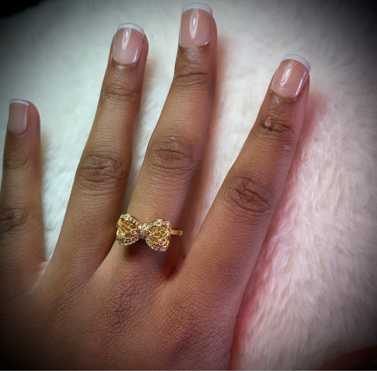 A bold take on cute — this chunky bow ring is fully iced out, catching the light from every angle. Playful yet powerful, it’s the perfect mix of sparkle and statement.
