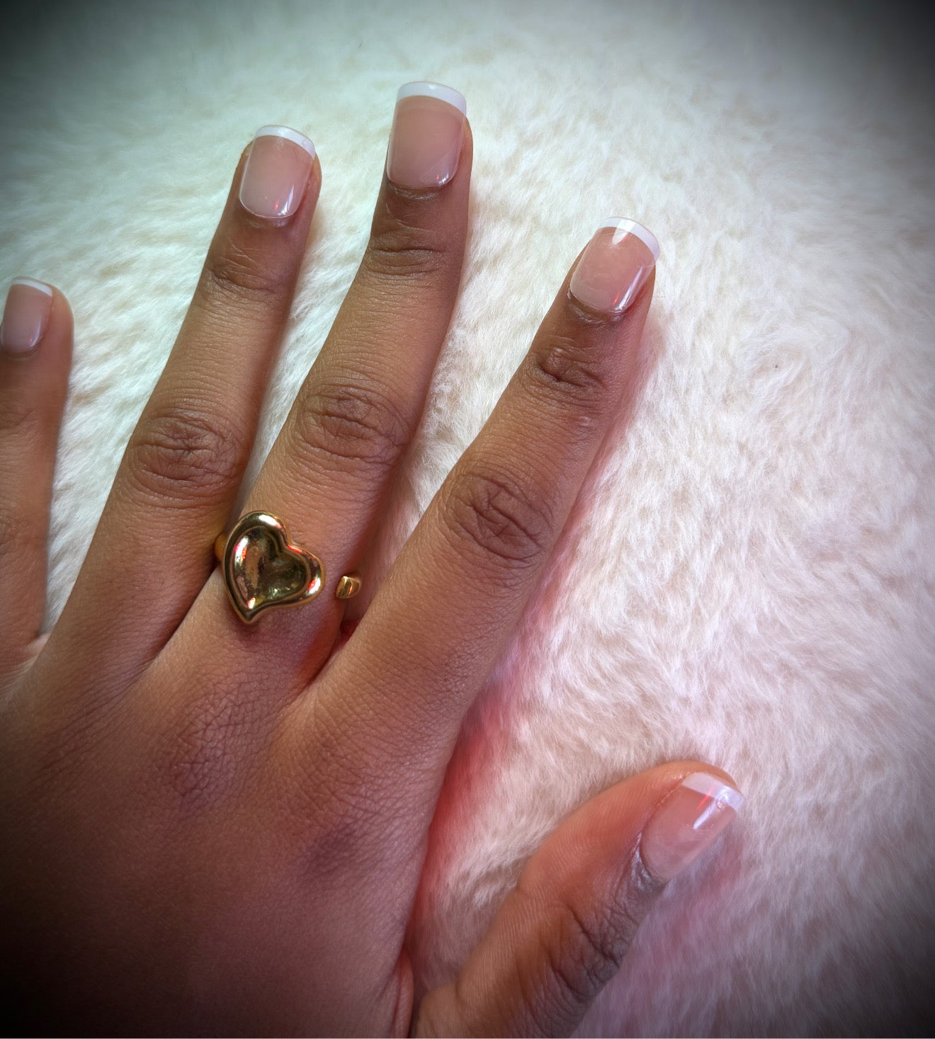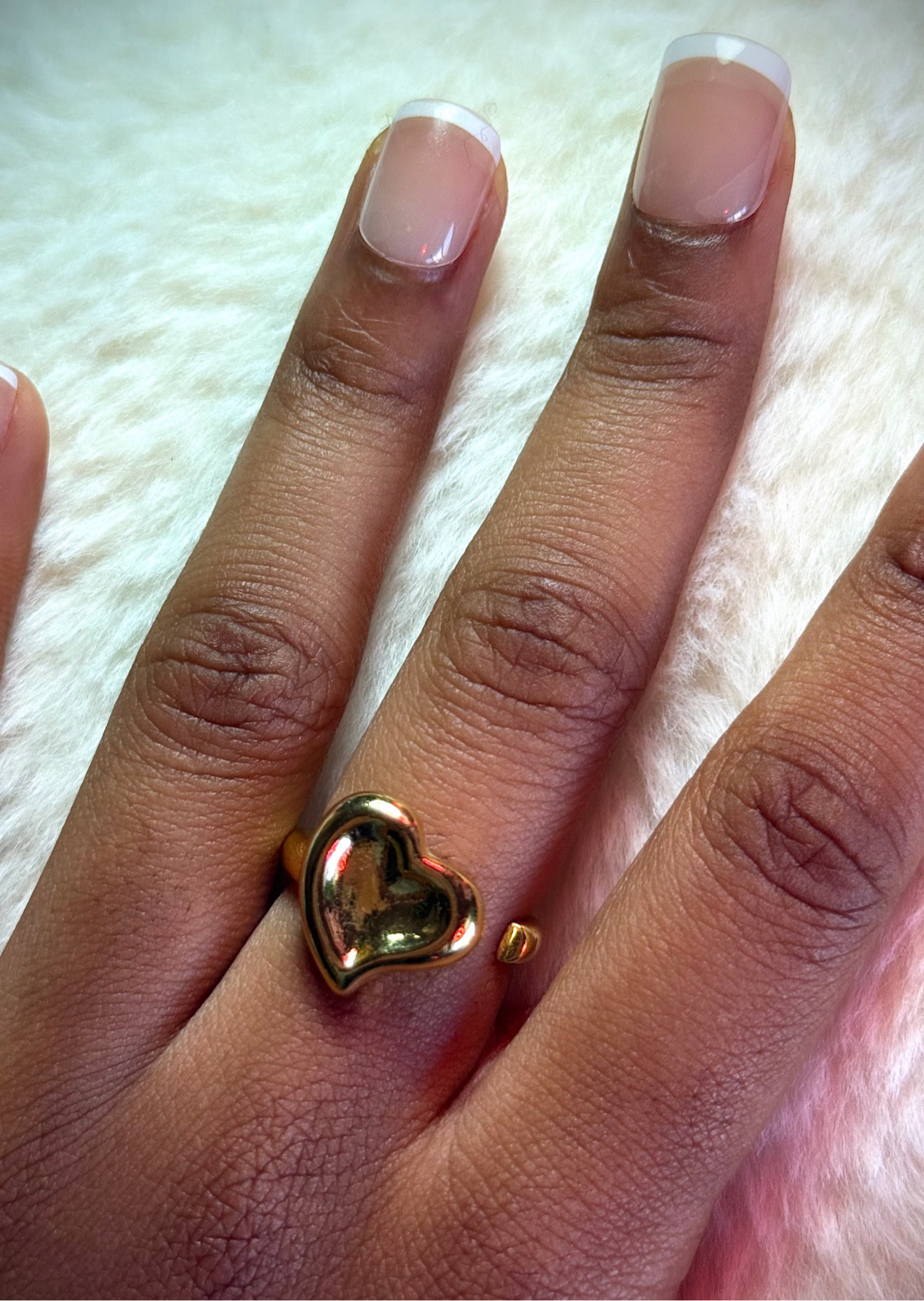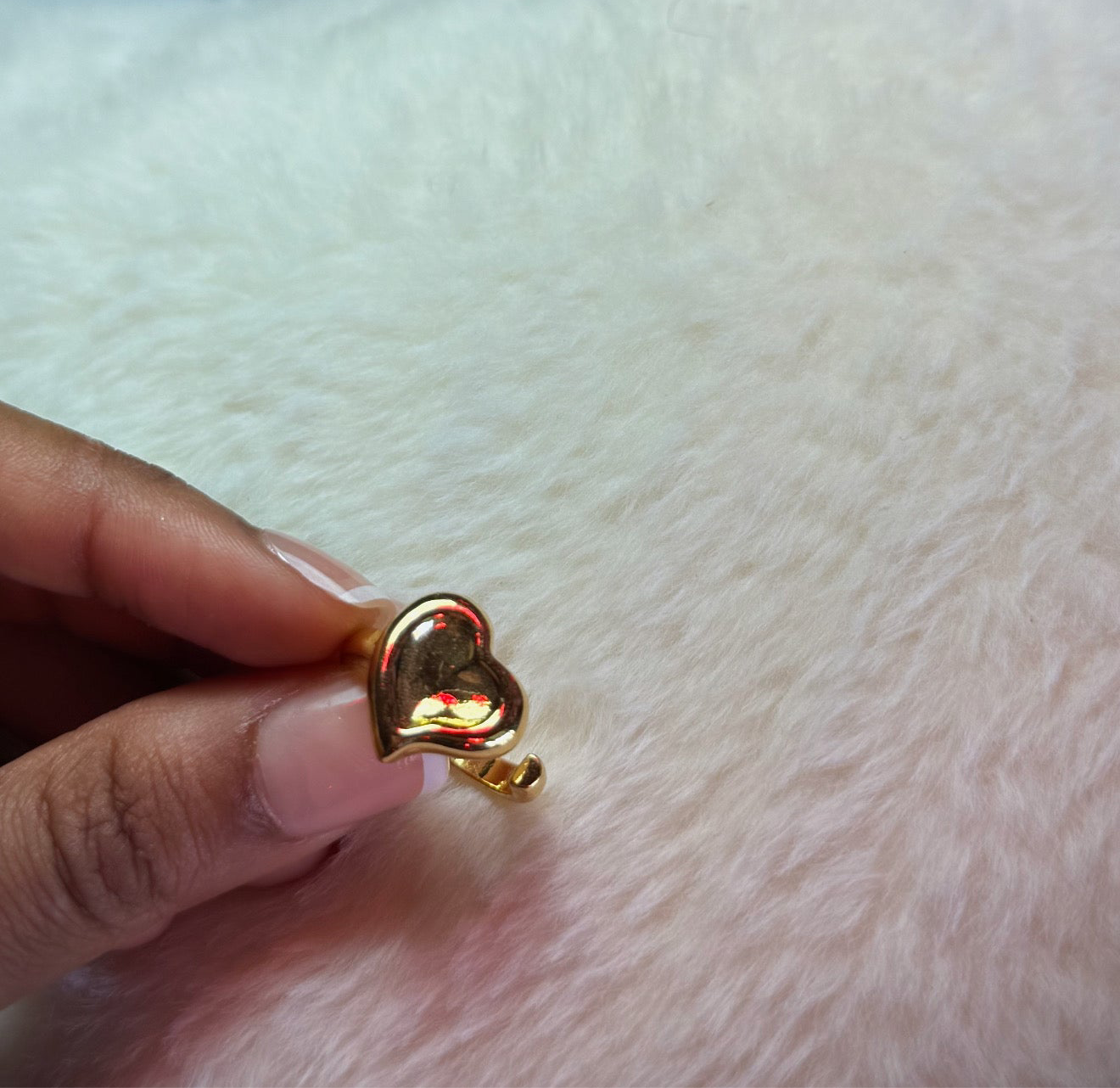 Romantic and timeless, this heart-shaped ring is a symbol of love and effortless charm. Crafted with a sleek silhouette and polished finish, it’s designed to be worn solo for a sweet statement or stacked for a touch of playful elegance.